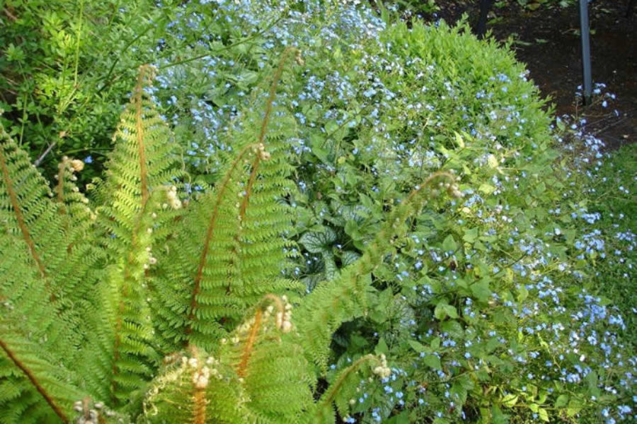 Full partial shade Soil Type. Web Plant of the Week. In mid to late spring baby blue blooms sprout out above its leaves on sturdy stems.